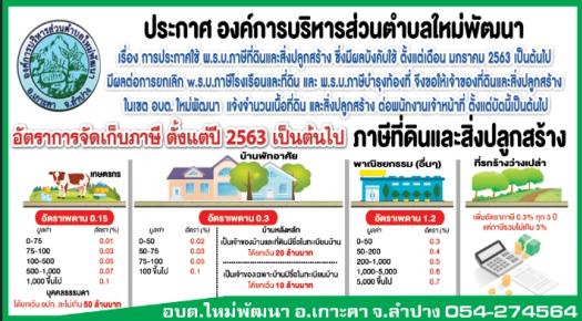 ประกาศ เรื่อง การจัดเก็บค่าธรรมเนียม และเก็บขนขยะมูลฝอยในเขต อบต.ใหม่พัฒนา